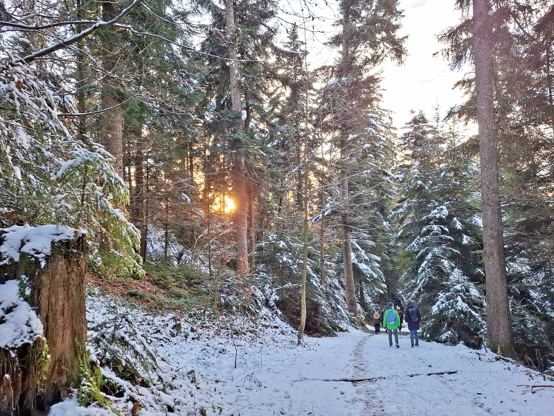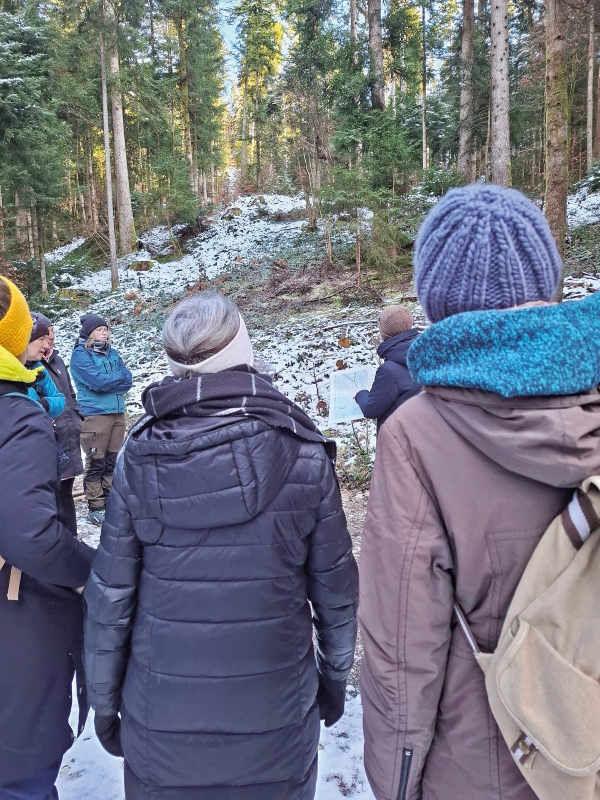Elf Frauen, davon sieben Waldbesitzerinnen, sind der ertsen Einladung gefolgt, sich an einem strahlend schönen Spätherbstnachmittag zum Thema Plenterwald informieren zu lassen, sich in lockerem Rahmen auszutauschen und zu vernetzen, einen spannenden Plenterwald intensiv zu begehen. Es war kalt, es war stellenweise schneebedeckt und rutschig. „Es war eine ganz besondere, bisher so nicht gekannte Atmosphäre“ – so eine der Teilnehmerinnen.