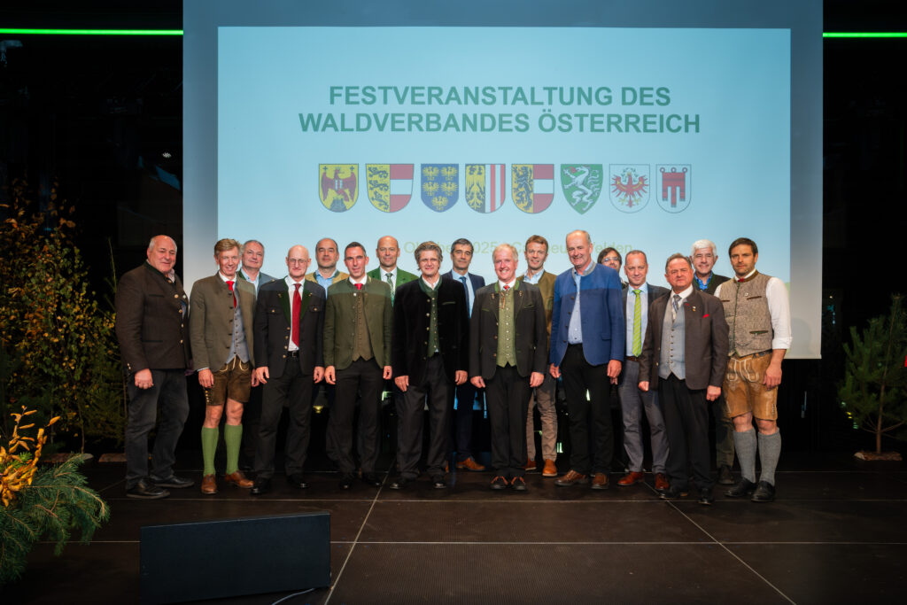 Die Obmänner und Geschäftsführer der heimischen Waldverbände bei der Festveranstaltung des Waldverbandes Österreich in Velden anlässlich der Übergabe der Omannschaft. (c) Waldverband Kärnten, Simon Bernlieger