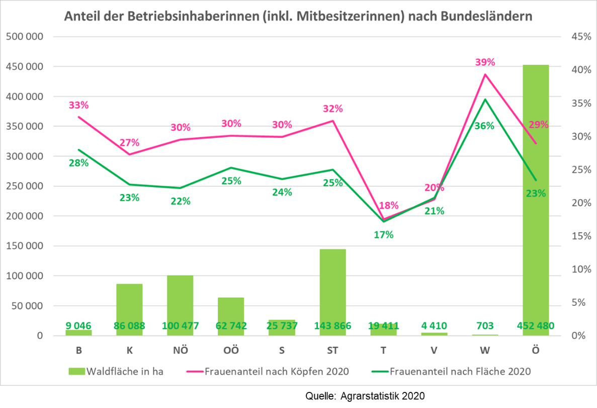 Österreichweit sind 29 Prozent Waldeigentümerinnen und Waldmitbesitzerinnen. 23 Prozent, also fast ein Viertel der österreichischen Waldflächen – liegt in ihren Händen. In Vorarlberg sind es je ein Fünftel. Diese aus 2020 stammenden Daten werden heute kaum anders sein.